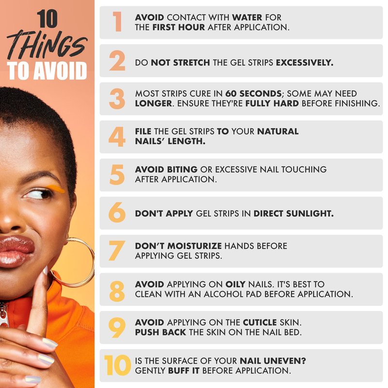 - All Set – Your nail art kit includes 20 semi-cured gel stickers for nails, a wooden cuticle stick, and a nail file. The set is vegan, not tested on animals, and contains no harsh chemicals. Disclaimer: The shade on the box may slightly differ, but rest assured, the nail strips inside match the color as shown on the images above.
