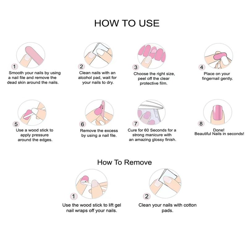 - Salon-Quality UV Gel Nail Strips : Includes 2 Prep Pads, Nail File & Wooden Stick, This UV Gel Nail Stickers That Are Easy To Apply And Remove, Giving You The Perfect Solution For Achieving Long-lasting, Salon-worthy Nails In The Comfort Of Your Own Home.