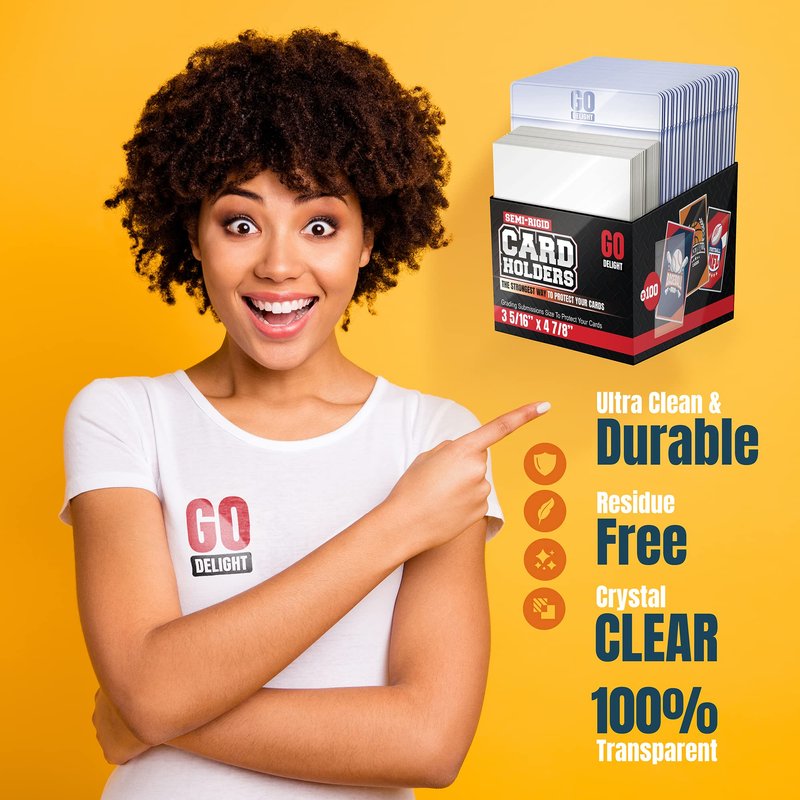 - ✔ PERFECT SIZE FOR GRADING: Go Delight's semi-rigid card holders are precisely engineered for PSA & BGS grading submissions, assuring easy insertion and removal of cards. Their perfect sizing ensures that your valuable collectibles are protected from damage during the grading process, facilitating a hassle-free submission every time.