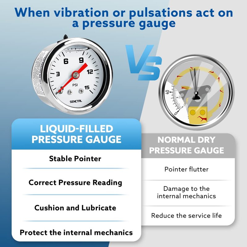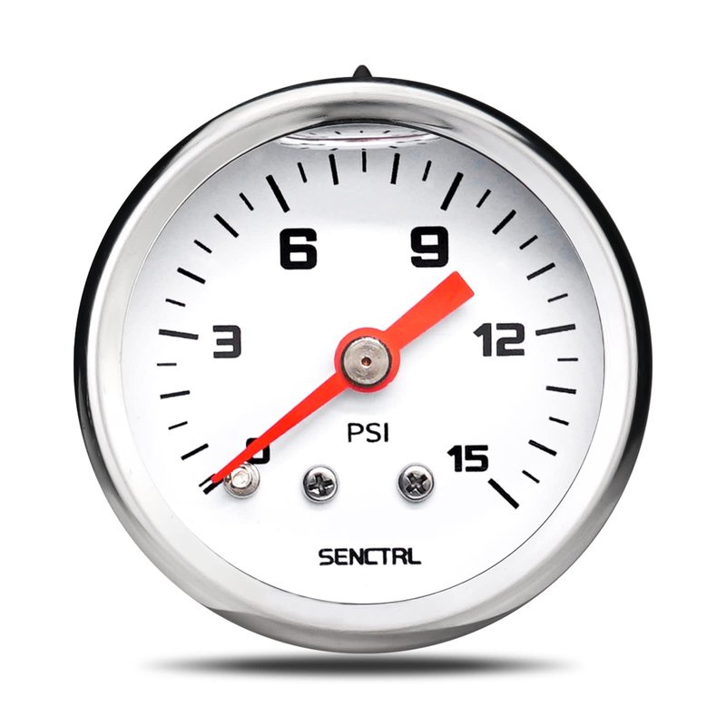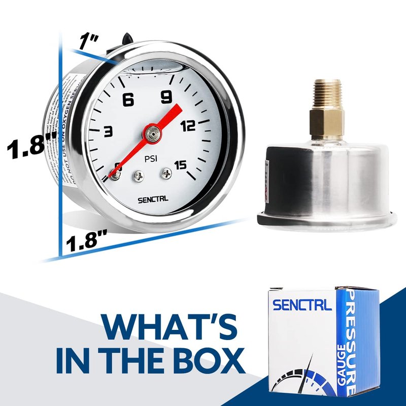SENCTRL 0-15 Psi Fuel Pressure Gauge, 1-1/2" Dial Size, 1/8" NPT Back Mount, Silicone Oil Liquid Filled, Stainless Steel Case, Inline Low Pressure Gauge, for Water Oil Air Pressure Test