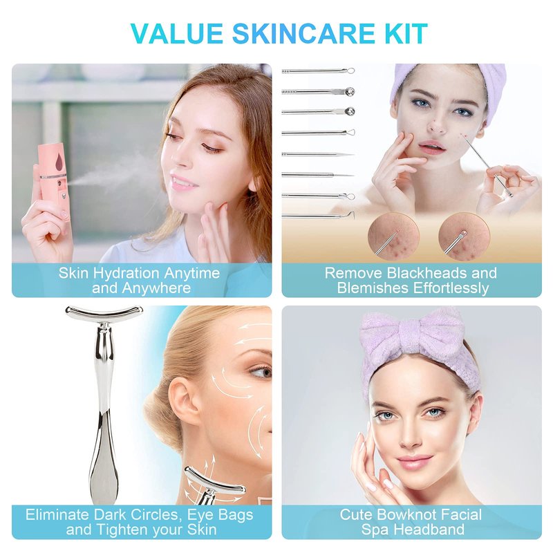 - 【VALUE PACKAGE】: Each face steamer set include 1 face steamer , 1 nano mist sprayer, 1 headband, 4 piece blackhead remove set and 1 eye cream massage stick. All of these are your practical skin care tools!
