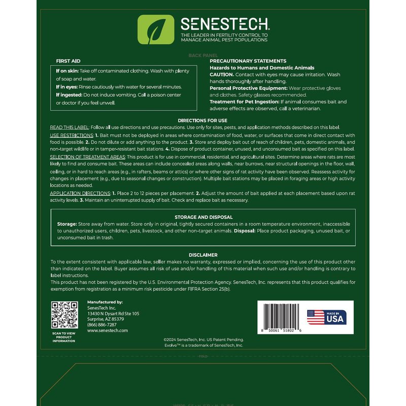 Senestech Evolve Cottonseed Oil-Based Soft Bait Contraceptive for Rats, Formulated to Lessen The Population in or Near Your Home, 1.5 lbs (Approx 21 Pieces)