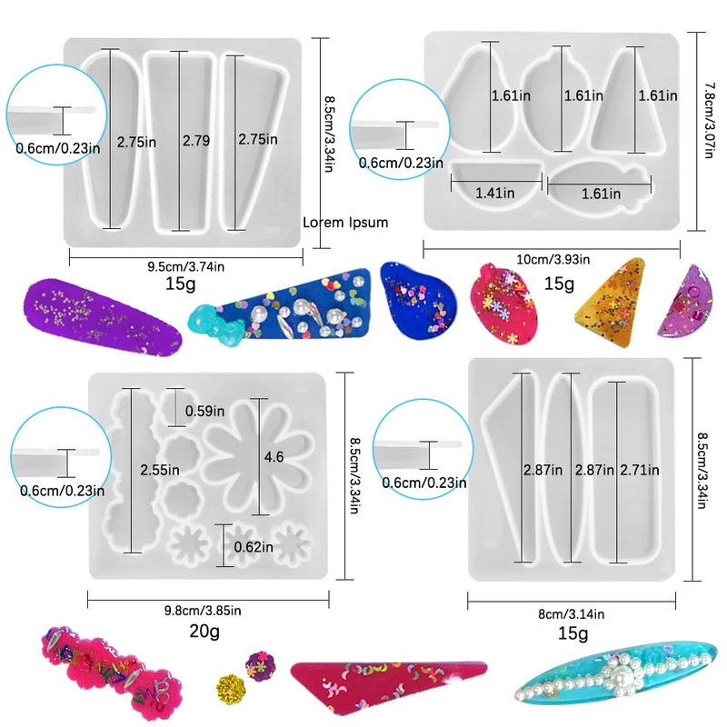 - Widely Used: These molds have a variety of shapes and designs, not only for making hair clips, but also for DIY crafts, handmade home decoration jewelry, making necklaces, bookmarks, keychains.
