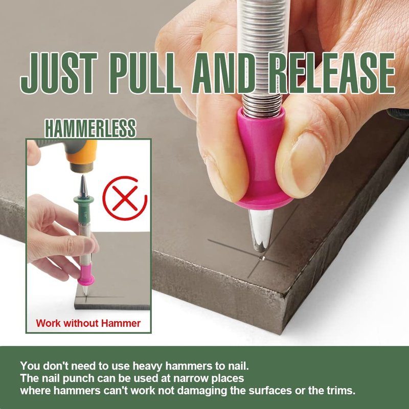 - Durable to Use: Hammerless spring tools are made of alloy steel to withstand wear and weather, the spring nail setter has been heat-treated, and the high-strength spring can exert a strong impact.