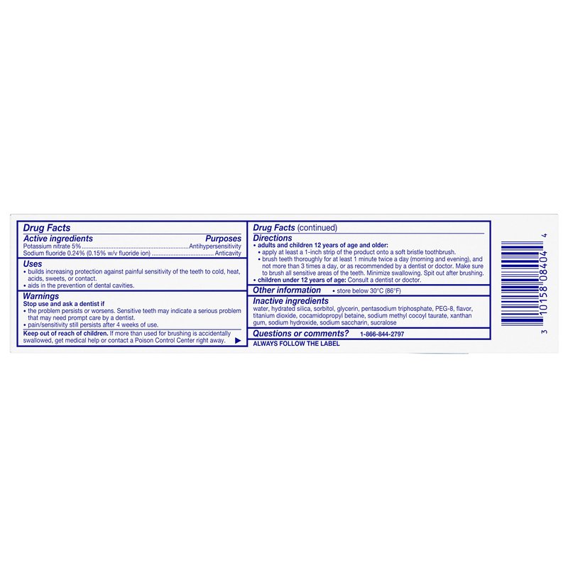 - One 4 oz tube of Sensodyne Extra Whitening Toothpaste for Sensitive Teeth, Cavity Prevention and Sensitive Teeth Whitening