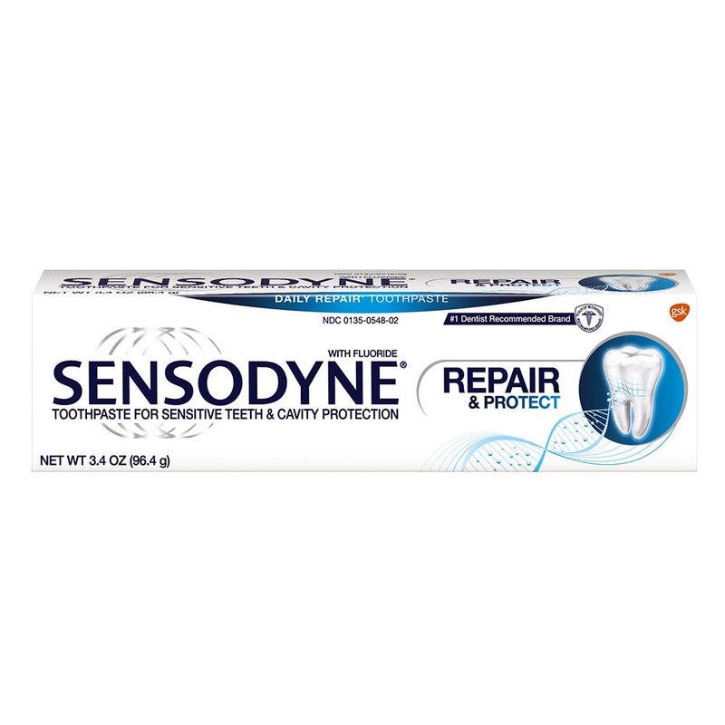 - One 3.4 oz tube of Sensodyne Repair & Protect Sensitive Toothpaste, Cavity Prevention and Sensitive Teeth Treatment