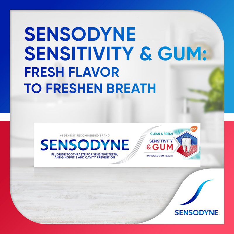 - Four 3.4-ounce tubes of Sensodyne Sensitivity & Gum Sensitive Toothpaste for Gingivitis, Sensitive Teeth Treatment, Clean & Fresh