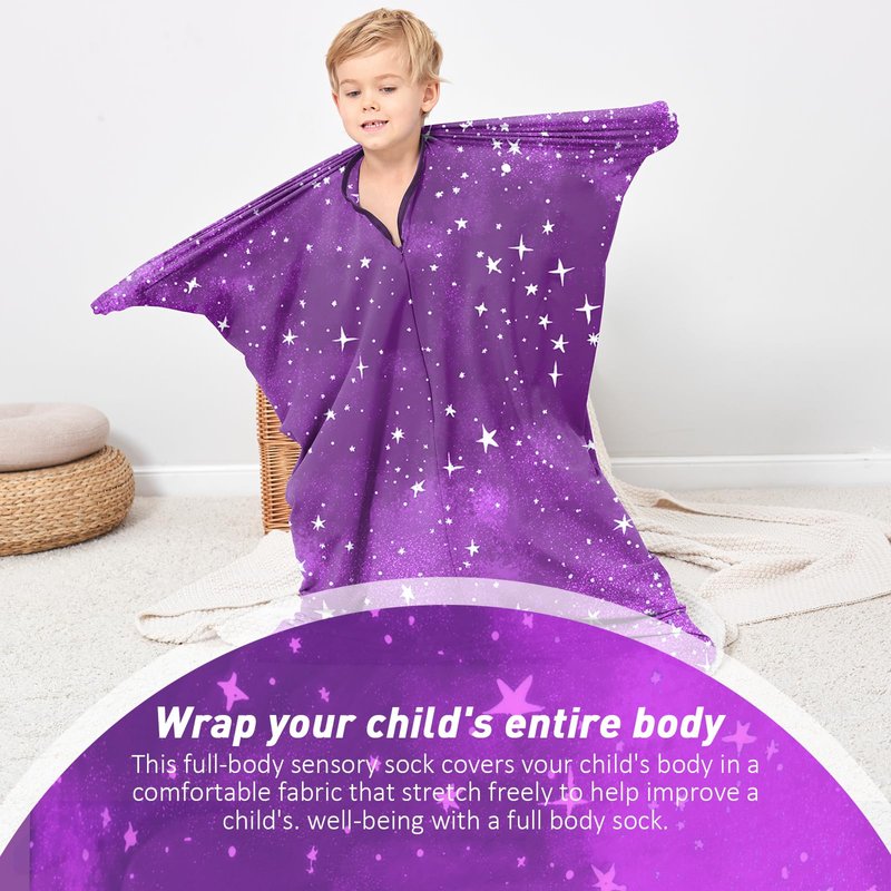 Sensory Body Sock for Kids,Sensory Sack for Relaxation, Focus,Sensory Integration,Body Sock (Medium 47''×27'' Purple)