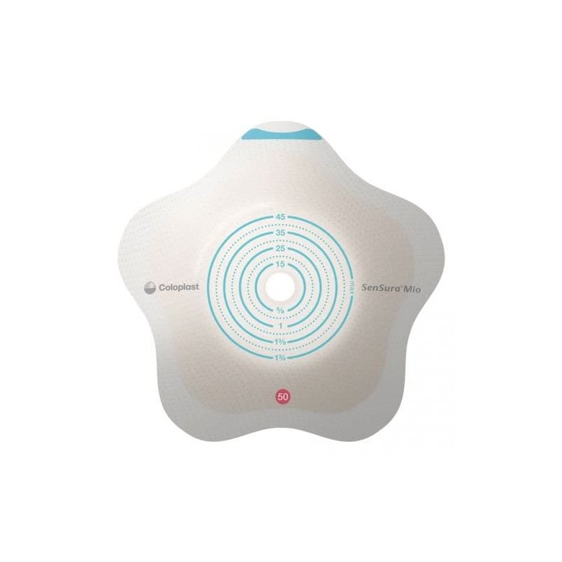 SenSura Mio Convex Flip is the first product specially designed to fit bulges, hernias and curves. The curved star-shaped barrier fits securely over bulges, hernias and curves. The petals of the star-shaped barrier hug the body without creasing or folding. The stability ring stabilizes the center zone so the stoma gets the necessary support, and guides where to put pressure while fitting. Finally, the elastic adhesive and fit zones follow the body's movements. Together, all the benefits ensure that there is greater contact between the adhesive barrier and the skin.