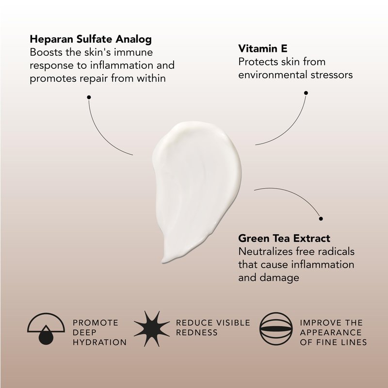 - Hydrating repair cream for reduced appearance of redness and visibly healthier-looking skin.