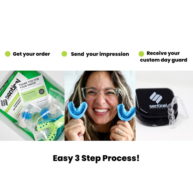 Do you grind or clench your teeth, leaving you with jaw pain and headaches? Maybe you've tried other mouthguards, but found them uncomfortable or too bulky to wear during the day. And let's face it, no one wants to look like they're wearing a football mouthguard when they're at work or out with friends. The Sentinel Mouthguards No-Show Day Mouthguard is the perfect solution for teeth grinding and clenching. Made from a thin, flexible material that's comfortable to wear, it's virtually invisible during the day. Plus, it's custom-fitted to your teeth for maximum effectiveness and comfort. Features: Thin and comfortable design that's virtually invisible Custom-fitted to your teeth for maximum effectiveness and comfort Made from high-quality materials that are safe and durable Easy to clean and maintain Can also be used at night for teeth grinding and jaw clenching Benefits: Protects your teeth from damage caused by teeth grinding and clenching Reduces jaw pain and headaches caused by teeth grinding and clenching Improves your sleep quality by reducing teeth grinding and clenching Boosts your confidence by not interfering with your appearance during the day Get the Sentinel Mouthguards No-Show Day Mouthguard today and start protecting your teeth and improving your sleep quality.