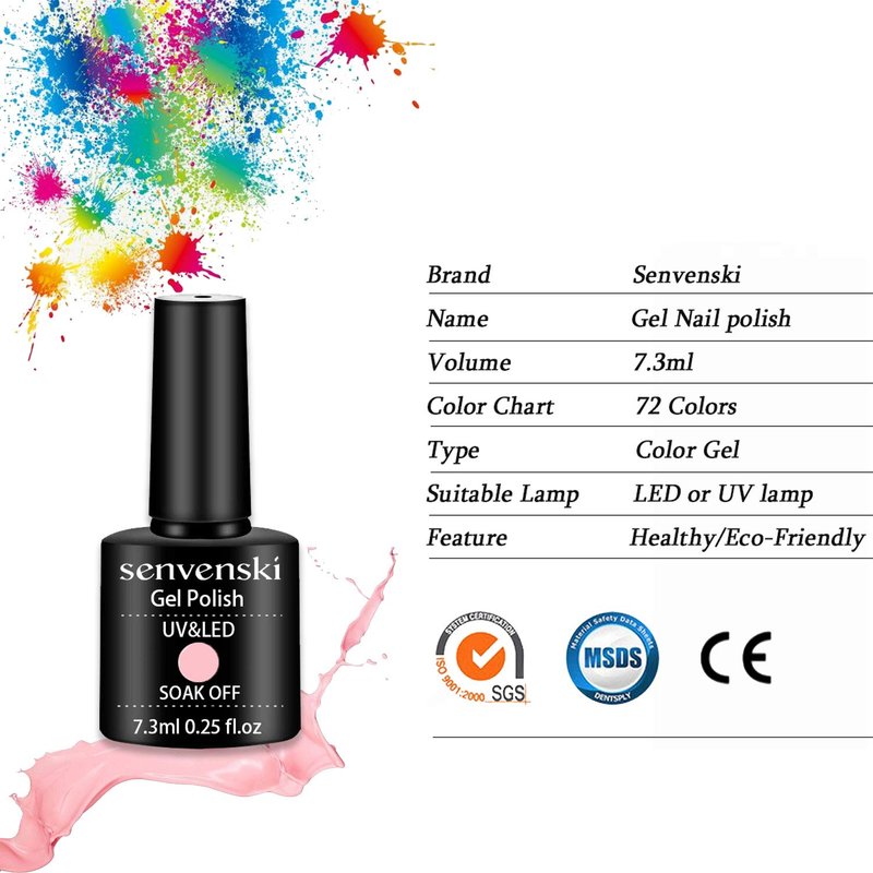 - ENVIRONMENTAL AND HEALTHY: Senvenski nail gel polish is made of natural resin, non-toxic formula. No harsh ingredients or adhesives with low smell, rich color, middle consistency, self-evenly, no shrink and edge, high pigmented, smooth finish. Shining orange gel polish suit for all nail art system, such as natural nails, acrylic nails, false nails and tips.