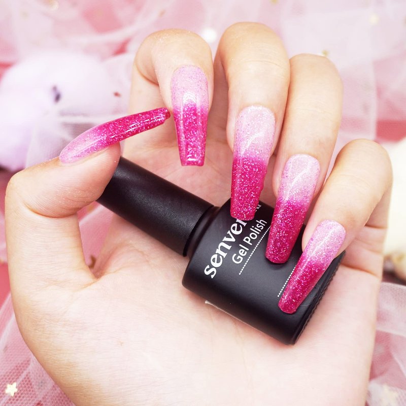 senvenski Color Changing Gel Nail Polish Blue Pink Purple Glitter Mood Chameleon Thermal Temperature Gift Set UV LED Art Manicure Varnish (WB001)