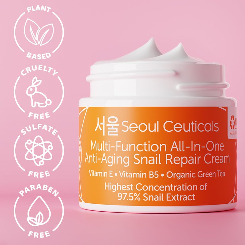 SeoulCeuticals Korean Skin Care 97.5% Snail Mucin Moisturizer Cream - K Beauty Skincare Day & Night Snail Repair Cream Filtrate Cruelty Free 2oz