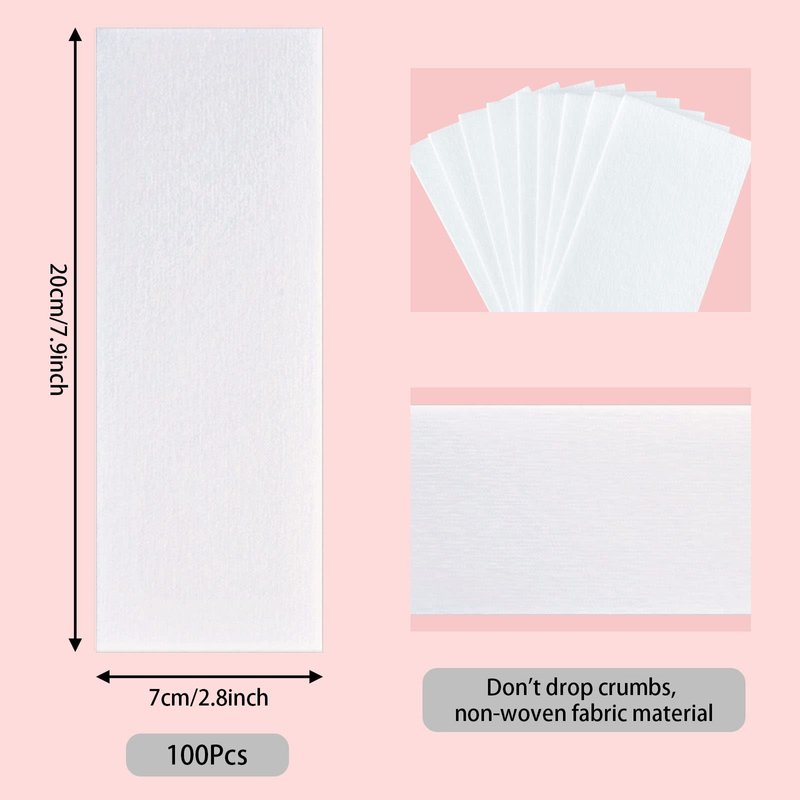 Characteristic: Thick and Durable Materials: These wax strips are made of non-woven fabric,sanitary , safe and durable, providing you with a gentle feeling during epilation process. The wax strips have strong tension and will not break during the epilation process, with a relatively long service time, soft and flexible . Suitable for Body: Waxing strips bring you a convenient and easy way to remove unwanted hair from the face, eyebrows, lips, legs, bikini,underarm area, and body, avoiding embarrassment when skin is exposed. Appropriate Size: Facial hair removal for women are 7 x 20 cm/2.8 x 7.9 inches in size, suitable for different parts of your body.Wax paper can also be cut into smaller sizes for more precise waxing services. NOTE: Strips are wax-free and should be used with soft hair removal wax. Usage Steps: Step 1: Clean the skin, trim the hair, and cut hair to 0.5-1.5 cm Step 2: Prepare hair removal and smear along the direction of hair growth Step 3: Stick the wax strip on the wax layer along the direction of hair growth Step 4: Smooth the depilatory wax strip without waiting, tighten the skin, and then tear off the wax strip against the direction of hair growth Step 5: Use warm water or wet paper towels to remove excess wax and apply some skin care products on the skin Specifications: Wax Strip Material: Non-woven fabric Size: 7 x 20 cm/2.8 x 7.9 inches