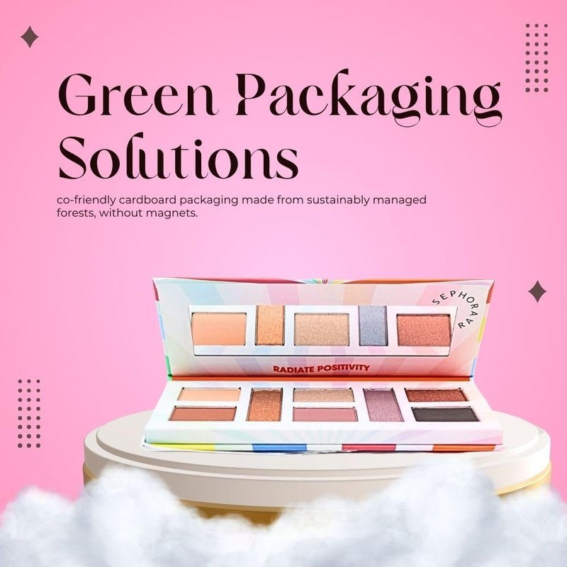- This eyeshadow palette contains eight universal shades with matte, shimmer, pearlescent, and metallic finishes. Intense yet easily blendable shadows, this holiday palette is perfect to create a custom festive makeup look. The case is designed without magnets and made of cardboard from sustainably managed forests.