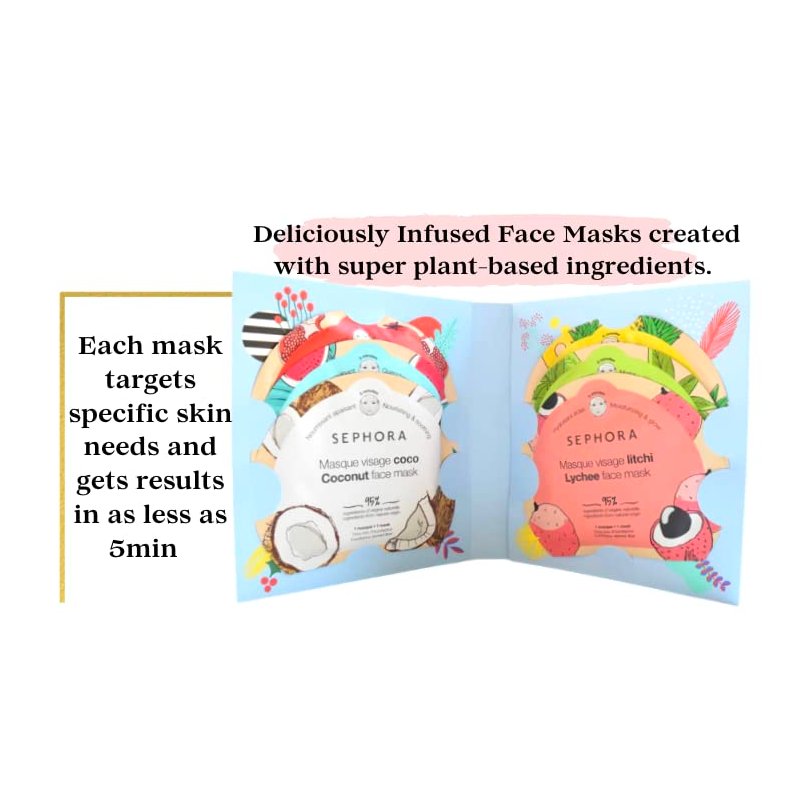 SEPHORA Collection Wishing You Face Mask Magic:: Watermelon, Lychee, Coconut, Matcha, Pomegranate, and Pineapple