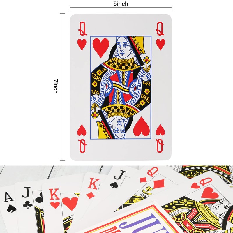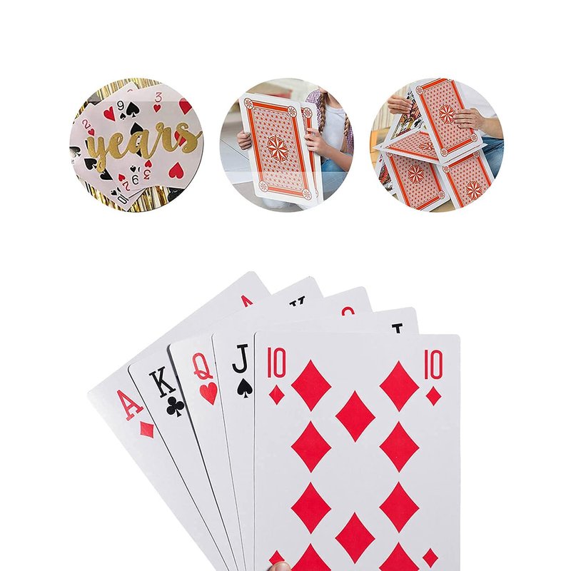 - Full of Fun: This giant-sized deck of cards is a super fun addition to any game night! Both kids and adults will enjoy playing with them, The possibilities are endless with these cards- play a game, make a house of cards, use as a decoration, give as a gift, put them into goodie bags…and more! they will be a hit at your next game night!