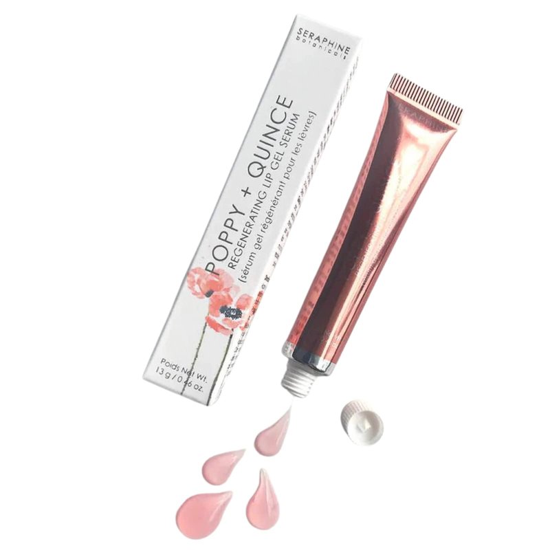 Seraphine Botanicals Poppy + Quince Regenerating Lip Gel Serum Repair Dry, Chapped Lips Instant Hydration Restorative Lip Mask, Repairs, Moisturizes, Plumps Lips Aloe Vera, Witch Hazel Extracts 13g