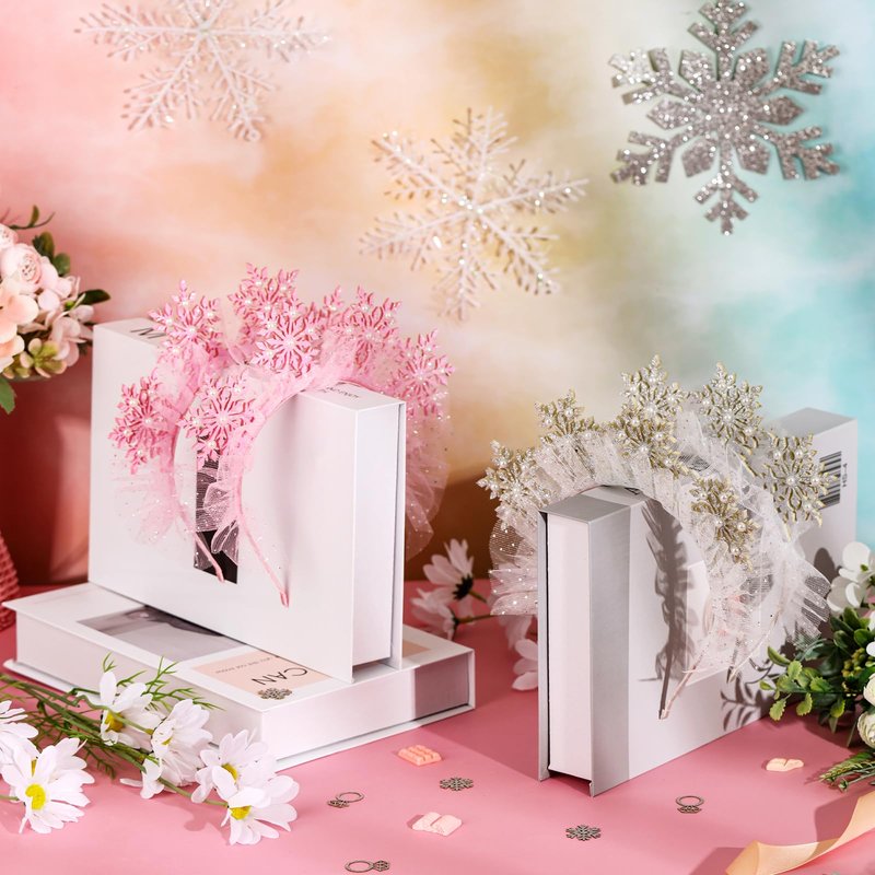 - Premium Material: Pink and sivler snowflake headbands are made of a high quality hair hoop, which is covered by close, so you will feel comfortable when you wear it. And we combined 4 glitter pink/silver snowflake and white organza, which is lightweight and elastic to ensure your exquisiteness at all times