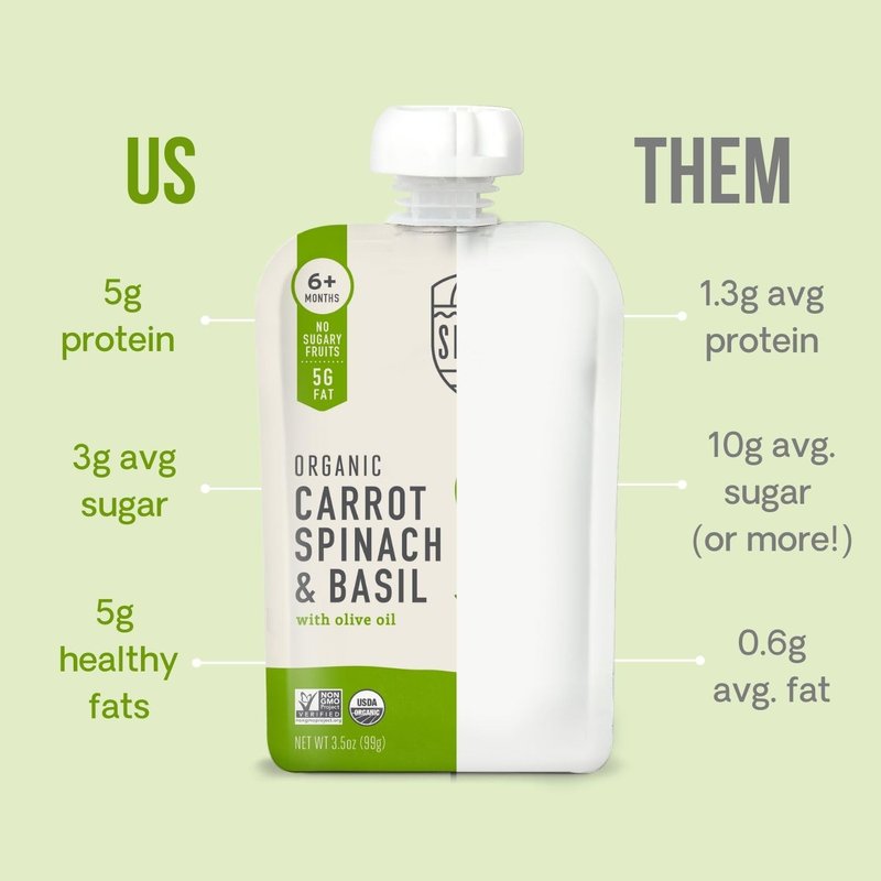 - NO SUGARY FRUITS: With no added sugars or sugary fruits, our veggie-first baby pouch meals are an ideal way to expand your baby’s palate!