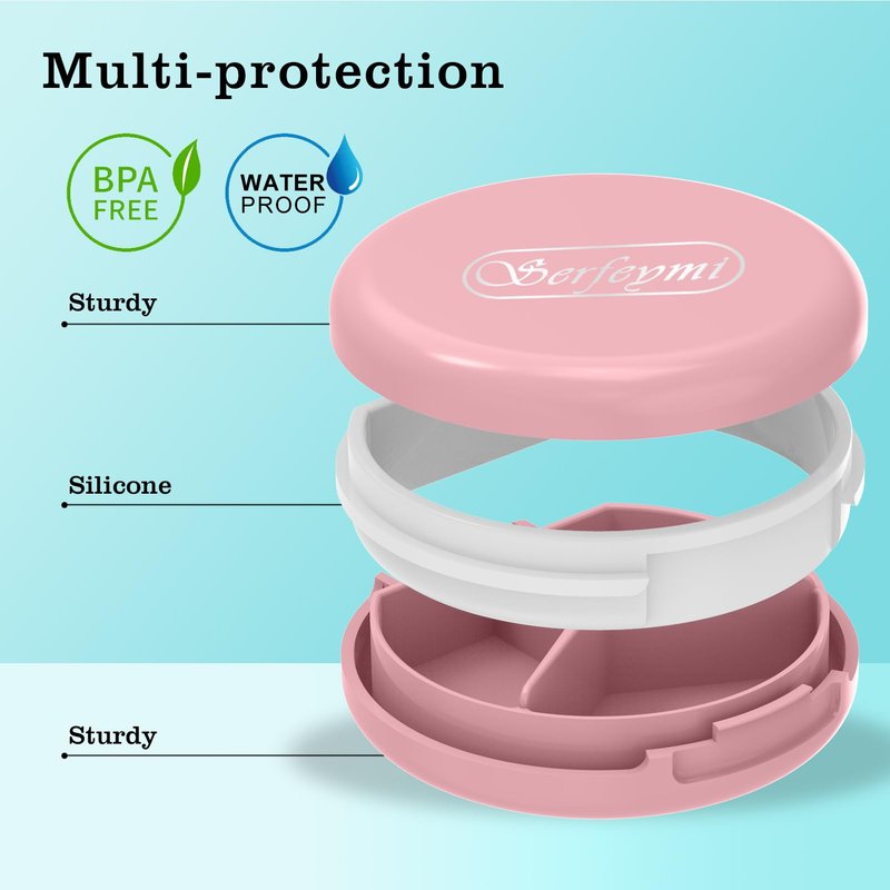 Serfeymi 3 Compartment Waterproof Cute Small Pill Box for Purse & Pocket,Travel Portable and Multifunctional Pill Case Holder for Vitamins, Fish Oil, Supplements, Pearls-Pink