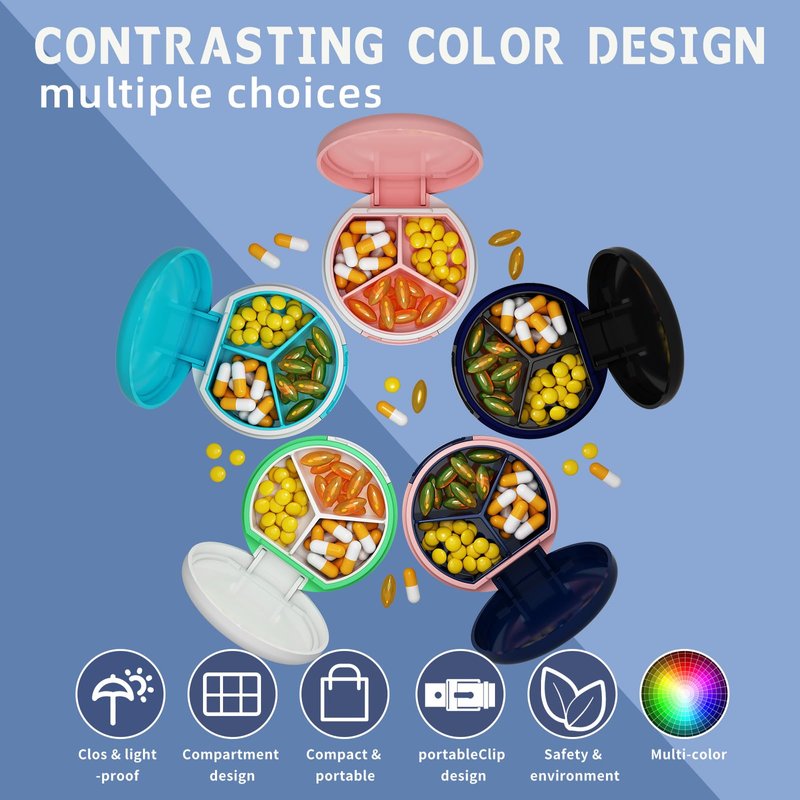 - [Small and compact]: The travel pill container has 3 compartments suitable for storing birth control pills, ketone pills, fish oil,pill holder with a large palm usually only needs to be put in the pocket and travel bag, suitable for business trips and daily commuting to work