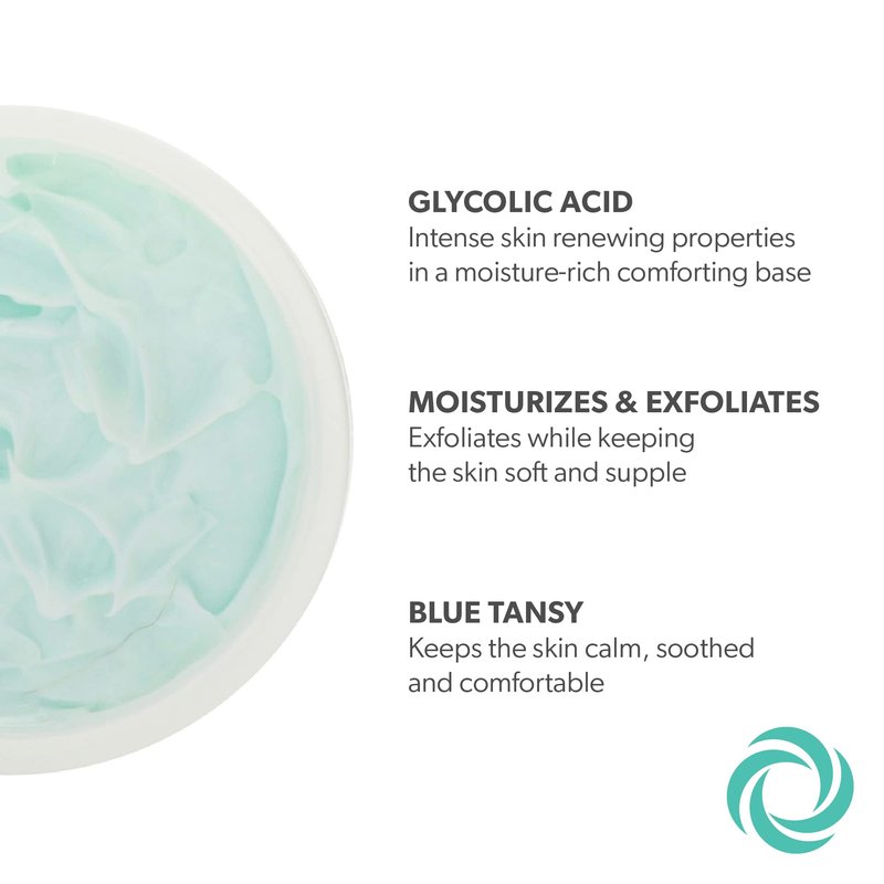 - Glycolic and Phytic acid resurface the skin as soothing Blue Tansy balances out the skins moisture. Enjoy high levels of Glycolic Acid without the harsh side effects.