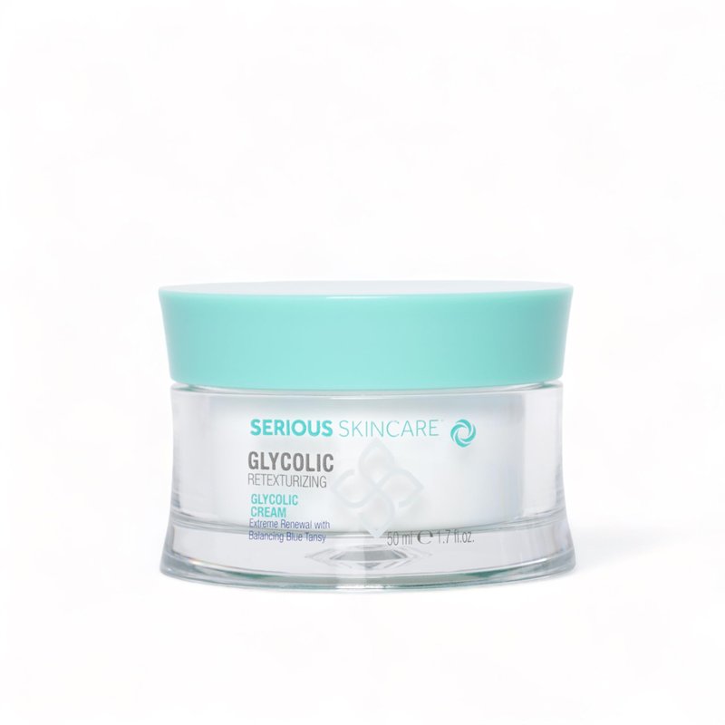 - Serious Skincare's Glycolic Cream offers the intense skin renewing properties of Glycolic Acid in a moisture-rich comforting base. The Glycolic Cream sinks onto the skin easily, delivering effective levels of exfoliation while keeping the skin soft, supple and completely moisturized.
