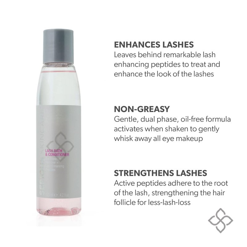 - EYELASH ENHANCING PEPTIDES – More than an eye makeup remover, LASH BATH conditions the eye lashes with active peptides that adhere to the root of the lash, strengthening the hair follicle for less eyelash loss, as it lingers to encourage an increase of lash volume and length.