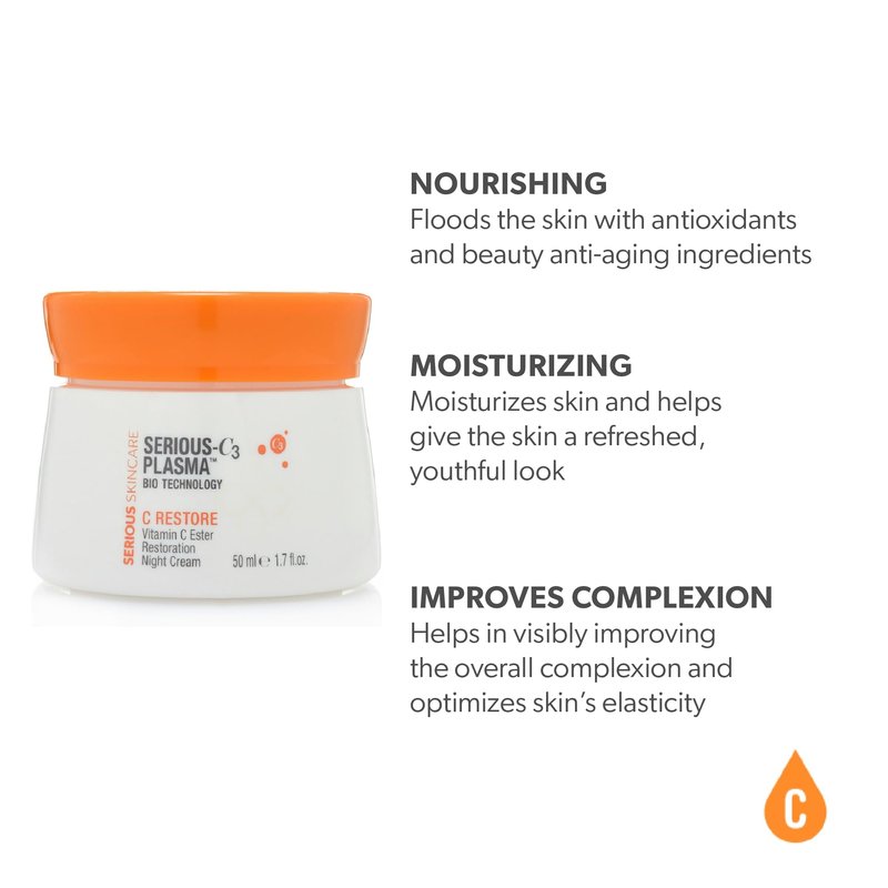 - C-RESTORE Vitamin C Ester Night Cream – our rich nighttime moisture cream is designed to hydrate, smooth and optimize the look of your skin. Our Night Trio includes one 1.7 oz C-Restore