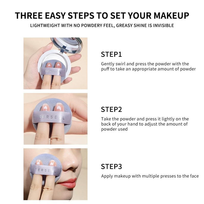 Serseul Translucent Setting Powder with Puff Applicator Natural Coverage Face Powder For Soft Matte Looking Convenient Protable Compact suit for Universal Tone.