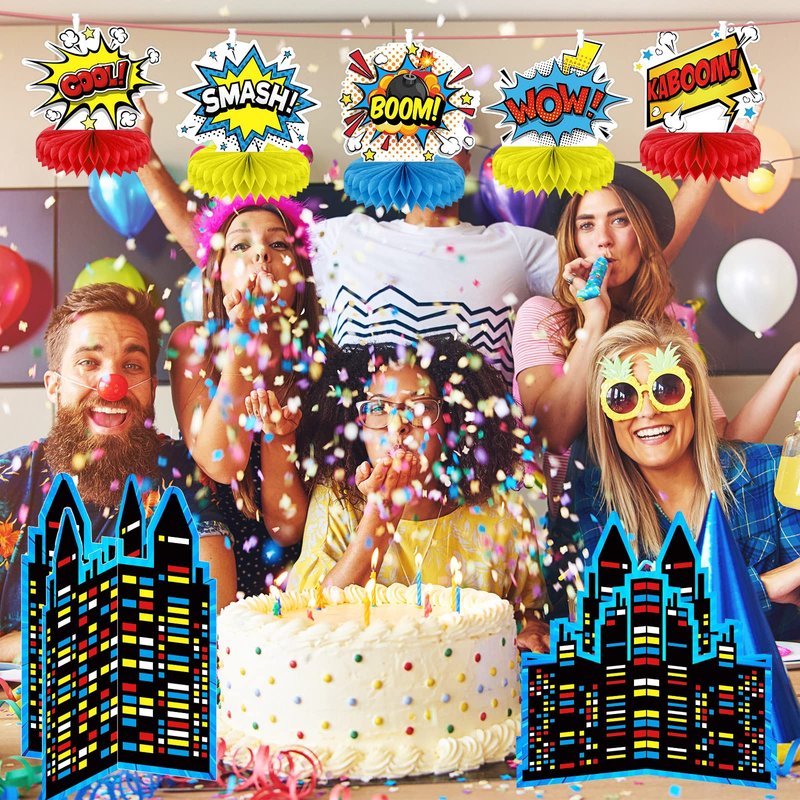 - Reliable material: these colorful hero theme birthday party cards are made of quality card paper, and the honeycomb is made of paper, non-fading, non-toxic, and odorless, creating high-quality party decorations.