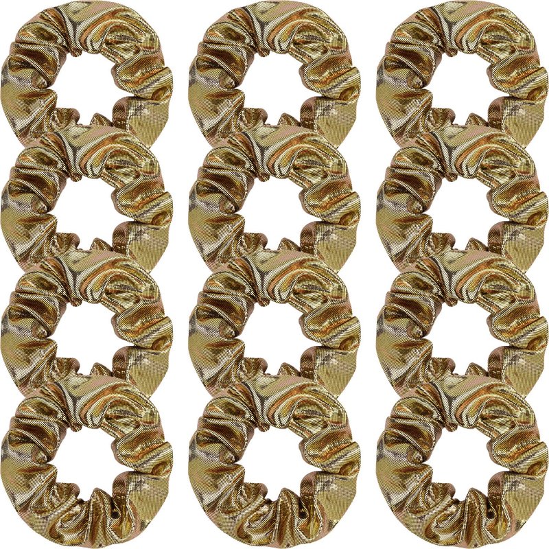 Set of 12 Cheer Shiny Metallic Hair Scrunchies Glitter Ponytail Holder Hair Accessories for Cheerleading Teen Girls College Sports (Gold)