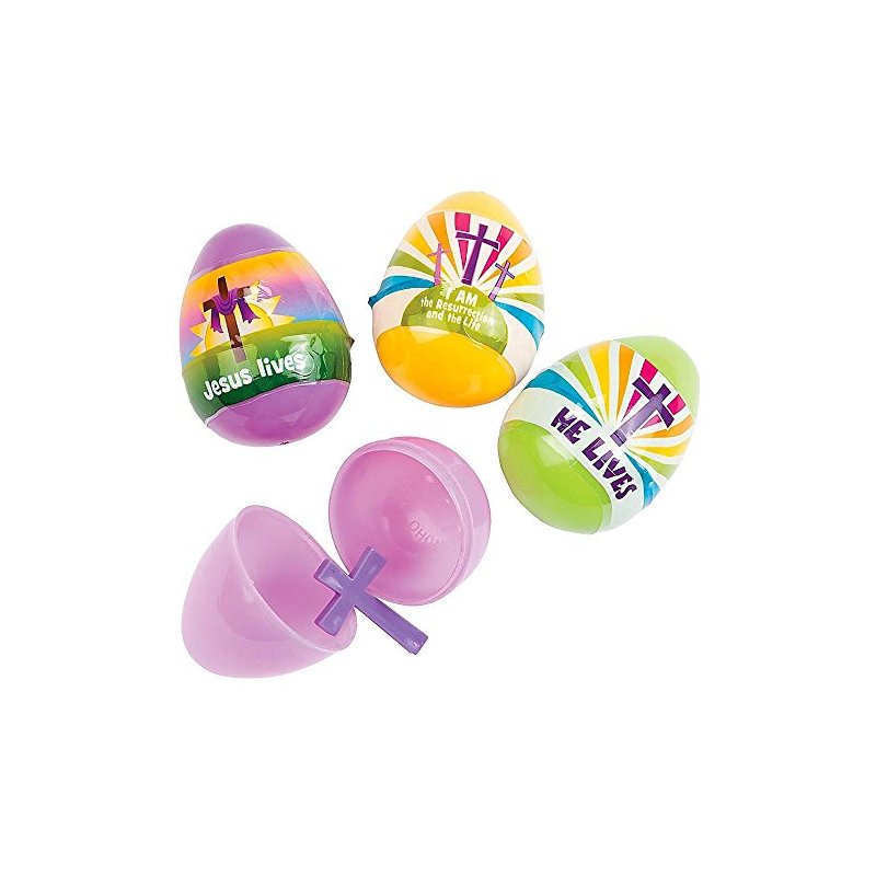 Set of 12 Religious Plastic Easter Eggs with Cross Inside