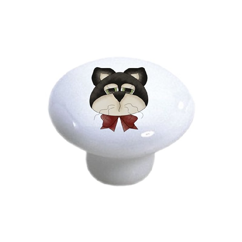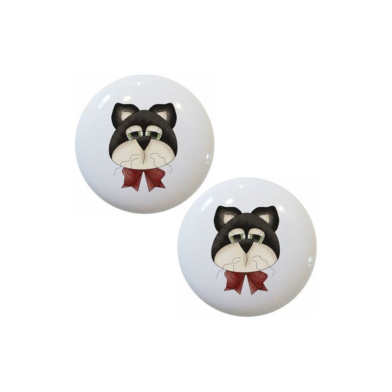 Set of 2 Black & White Cat Face Ceramic Cabinet Drawer Knobs