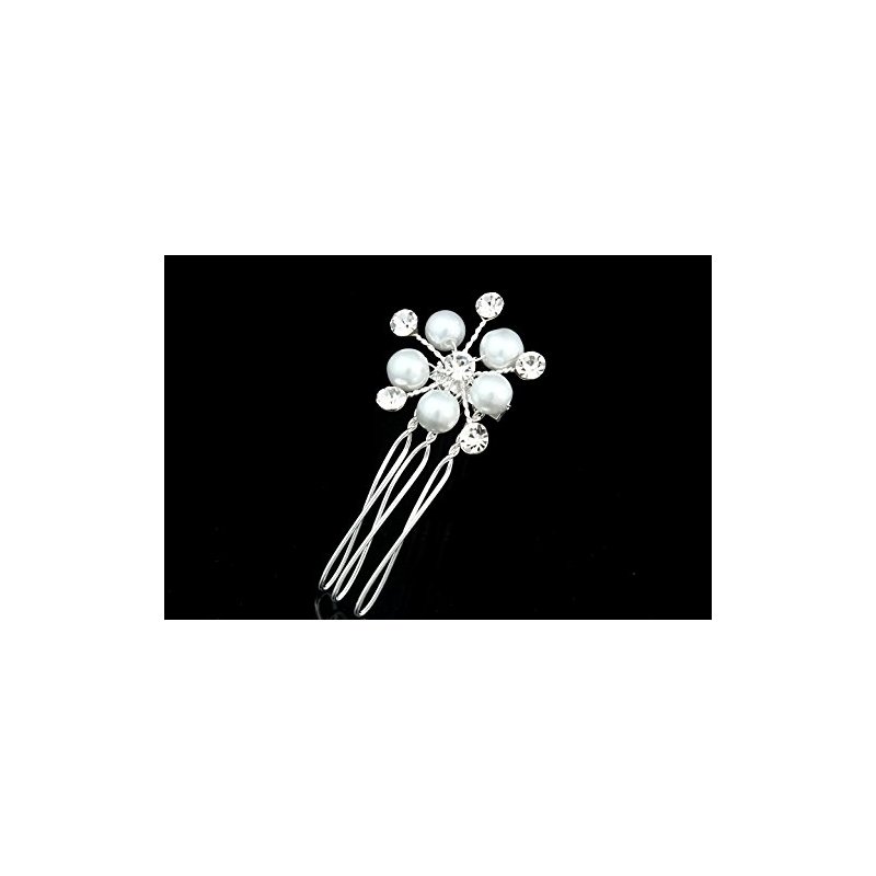 Set of 2 Handmade Faux Pearl Flower Crystal Hair Comb H091