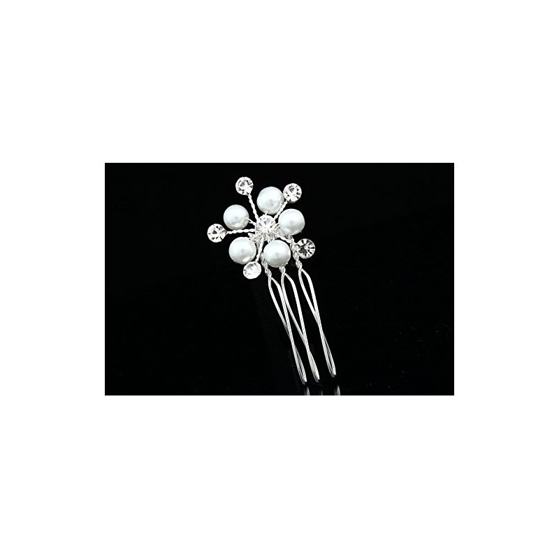 - 2 pieces handmade faux pearl flower crystal hair combs.