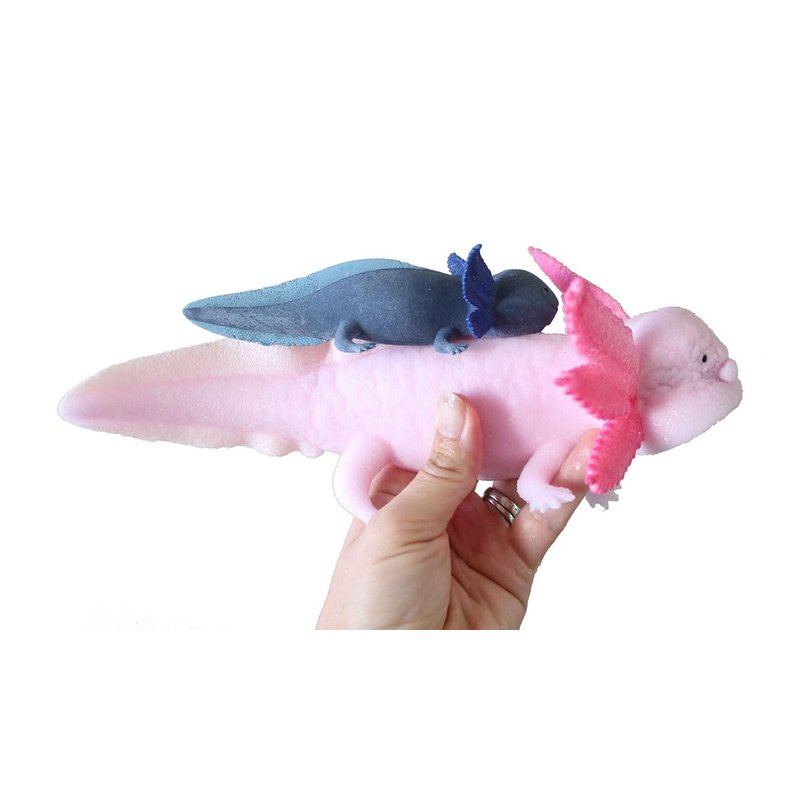 - These axolotls are one of those grow pets that slowly expand and grow after being submerged with water. Place it in water and it will slowly grows way bigger!