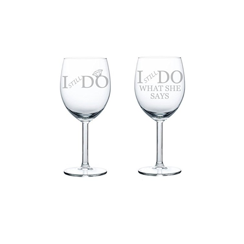 - Set of 2 Wine Glasses Funny Anniversary Vow Renewal I STILL Do What She Says