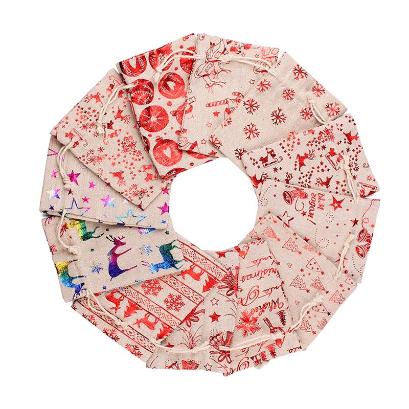 Set of 24 Christmas Burlap Gift Pouches with Drawstring,Jewelry Candy Bag Little Gifts Bags for Wedding Birthday Party Favors DIY Craft,5x7 Inch and 4x5 Inch