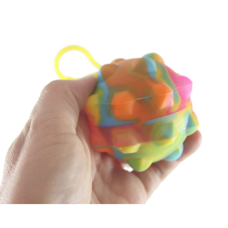 - You can poke and pop the bubbles down, then squeeze the ball to pop them up again.