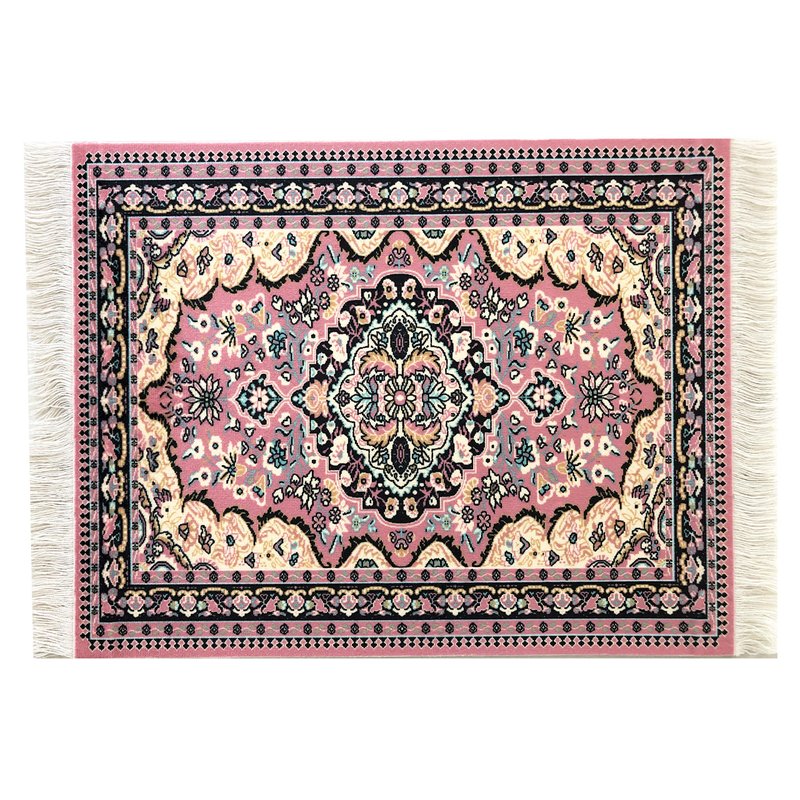 - Made with Care: The top of each rug is a velvet-style fabric with a high quality print of an Oriental and Turkish rug design. This gives the carpet a very soft and authentic look. The white fringes on each end make these minis realistic and fun.