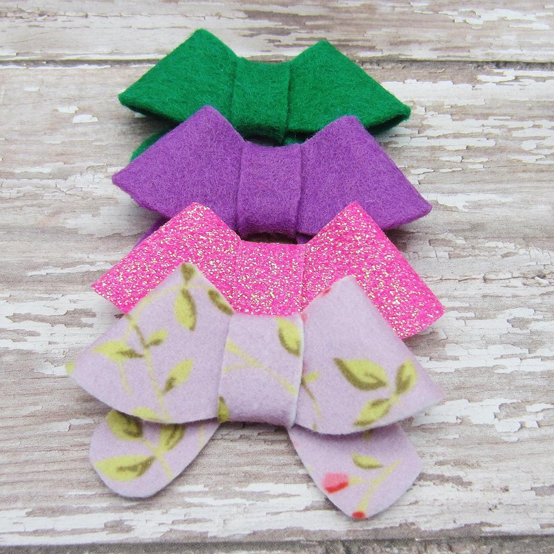 Set of 4 felt bows lavender, green, pink, glitter (Alligator Clip Right Side)