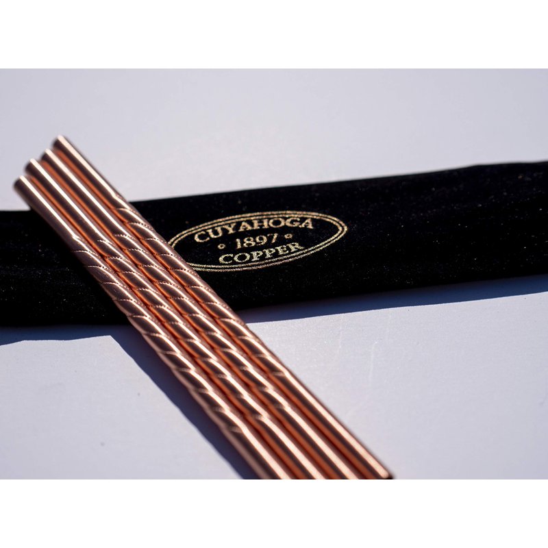 In 1897, the first patent for a machine to make paper drinking straws was published by an Ohio-born inventor named Marvin Stone. His invention of paper straws would forever transform how we drink our beverages. As we enter a new age, we are inspired by the past to offer the future of drinking straws Reusable.Eco-Friendly. Healthier. Introducing the 1897 Collection - a set of fine drinking straws brought to you by Cuyahoga Copper. These straws are made of fine pure copper and designed with an impressive spiral pattern. Why are these straws more expensive than others you can buy? Because our straws are NOT simply stainless steel straws with some type of “coating” to make them appear as copper. Our straws are pure copper! And pure copper has been used for centuries for many different beneficial reasons. Included with these pure copper straws is a perfectly shaped brush for effectively cleaning the insides of these straws after using. Also included is an attractive and practical velvet fabric bag with the Cuyahoga Copper logo. This set will make an impressive gift for any occasion. Perfect for any age group – young adults to older adults. Everyone will like them. Order a set for yourself and an extra set or two to have available as a last minute gift for dinner or party invites, or any other occasion.