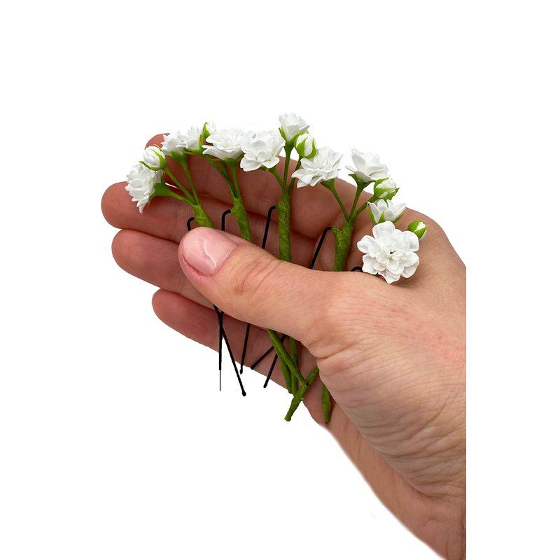 Set of 5 baby breath flower wedding hair pins. The life of the real baby breath flower is too short for making some hair accessories with them. Instead of real flowers, I offer you these beautiful handmade flowers that will never fade. Such flower hair pins can please you for many years. They will beautifully adorn your look in any season of the year.