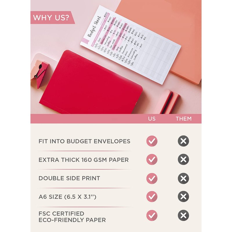 - Who has the time to organize their expenses at the end of each month? With these budget binder accessories sheets or a6 refill paper, you can save hours of your time by tracking your spending daily and without any hassle and extra work. Having Lamare’s budget sheets for cash envelopes means no more going through your bank statements, excel spreadsheets and time-consuming calculations. Save time with these budget sheets for a6 binder.