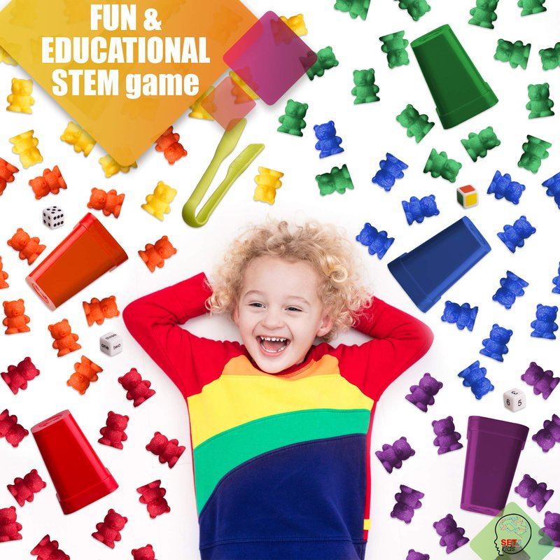 - 🐻MATH MANIPULATIVE - Kids experience MATH LEARNING that is FUN, STIMULATING, MOTIVATING and ENTERTAINING. Kids build CONFIDENCE at a young age by playing math games. Building a SOLID FOUNDATION by playing SET4kids games, can significantly reduce math anxiety later in school For TODDLERS- A GREAT MONTESSORI TOY . Counting colored bears teaches COLOR RECOGNITION, GROUPING and CATEGORIZING which are important skills for toddlers as well as a great brain connections builder