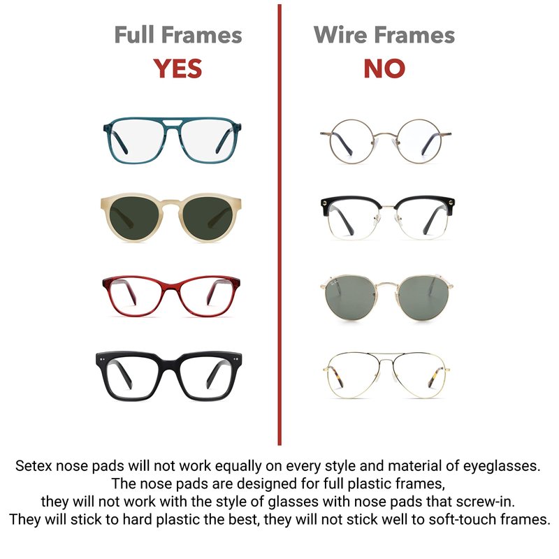 - SPECIFICALLY DESIGNED NOSE PADS FOR PLASTIC FRAMES, eyeglasses, sunglasses, readers, cheaters and safety glasses
