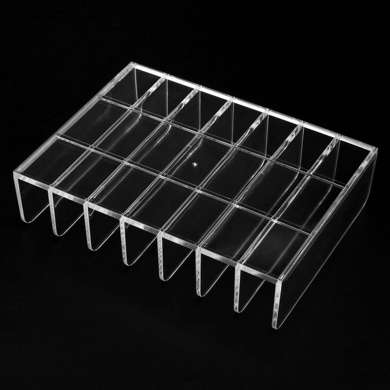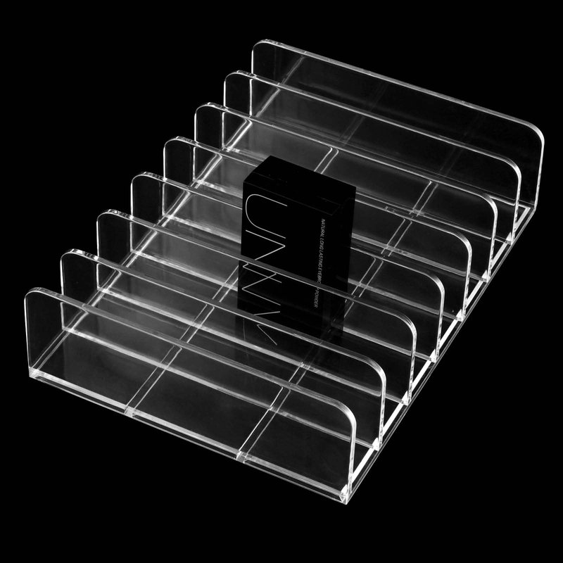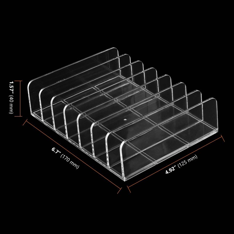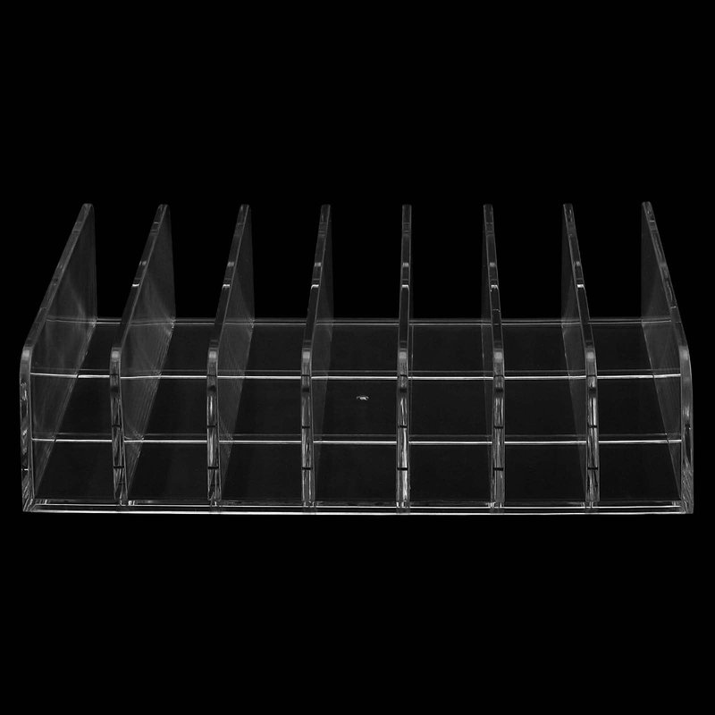 - 7 COMPARTMENTS DESIGN - Our acrylic makeup palette holder has 7 compartments, each compartment measures 0.87 inches, which can hold most of the different sizes of makeup, such as eyeshadow palette, grooming palette, blush, and other commonly used makeup products can be stored in it.